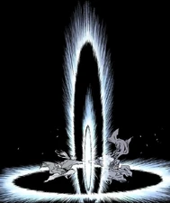 - Heavenly Destruction, Radiant Wheel Strike: Despite withdrawing his ki halfway through, it was notwithstanding powerful plenty to negate and overpower Dang Gan'due south Blazing Iron Shattering Thrust, creating a massive crater in the footing.[24]